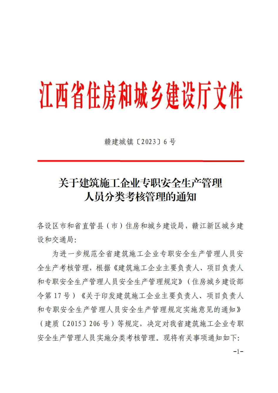 關于建筑施工企業(yè)專職安全生產(chǎn)管理人員分類考核管理的通知