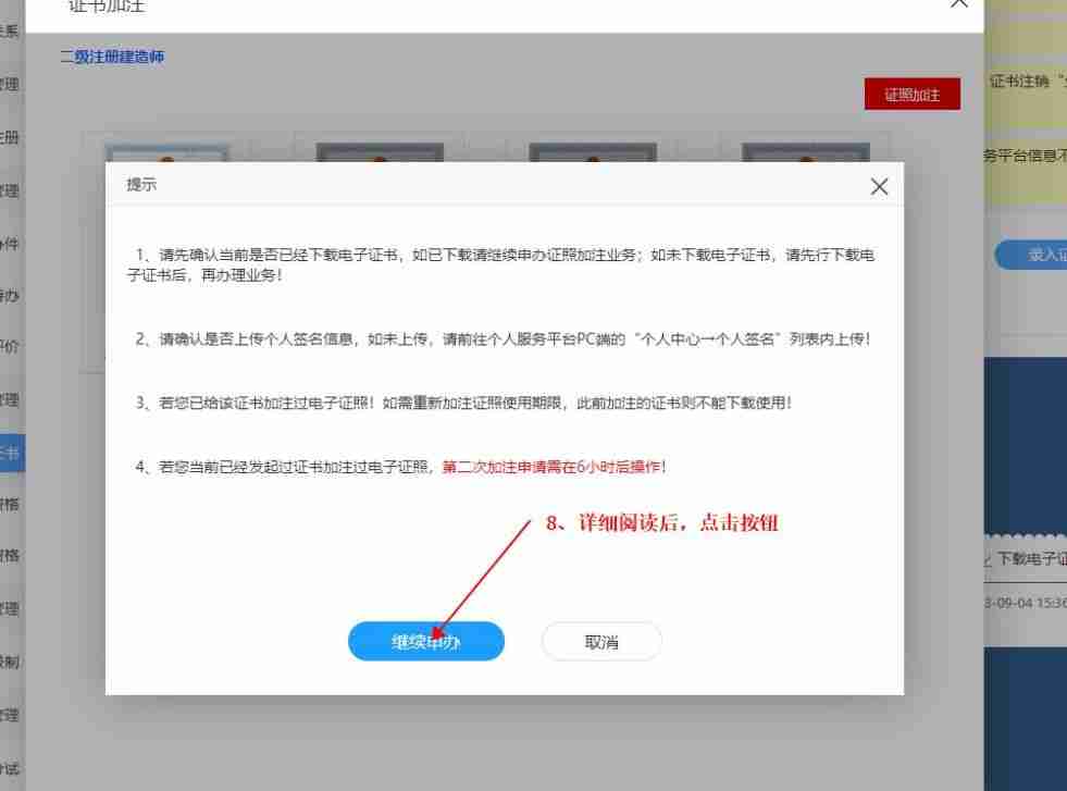注:證照加注需要耐心等待一會,且短時間內(nèi)不建議進(jìn)行二次加注證照。請?jiān)诓僮髑白⒁饪聪到y(tǒng)頁面的提示!