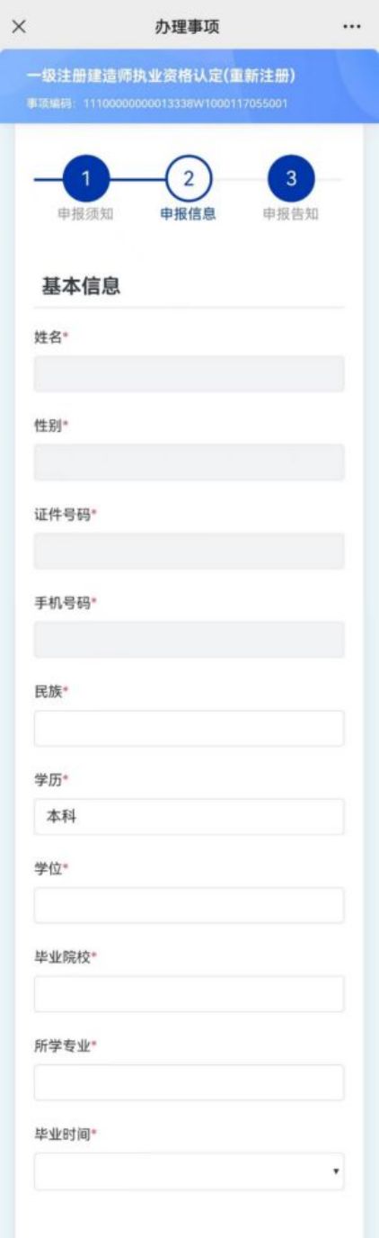 第一步:進(jìn)入申報(bào)信息填寫頁面后,請如實(shí)填寫民族、畢業(yè)院校、所學(xué)專業(yè)、學(xué)歷信息、畢業(yè)時(shí)間等信息(圖9-1);